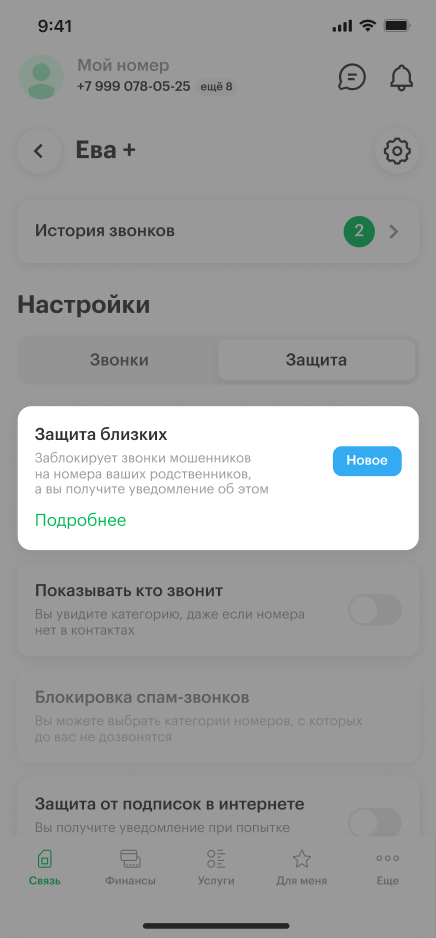 Защиту можно включить, если у ваших близких номер МегаФона