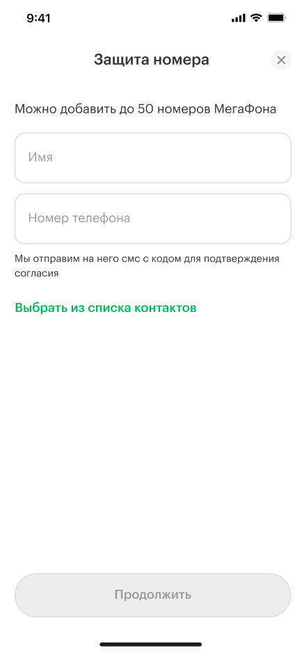 - 4Добавьте нужный номер МегаФона в список и подтвердите.
